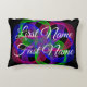 Create a humourous gift for yourself or for a friend with this name change geometric accent pillow.  This product features front side, first and last name text customisation.  On the back side of the pillow, switch the first letters of your front and last names to create an interesting new name that you can show off to friends.  Have fun with this colourful gift which features a double geometric loop mesh theme.  Complete the set with the in series design throw and round pillows.