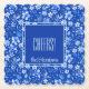 Cobalt Blue tropical flowers-- protea, hibiscus, pasiflora, and leaves pattern is featured on this elegant scalloped paper coaster. 'Cheers!' and script name are double framed in a matching blue. Change the text to make it yours using the easy Template provided. These paper coasters are 4"x4", made of 50 pt. pulp board (like in a pub) and printed in vibrant full color. This design will fit on 9 other shapes. The coasters come in a set of 6. Ideal as casual use for guests or parties. See "About" for more information.