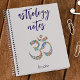 A personal 6.5" x 8.75" notebook featuring a colourful botanical pattern Om Symbol, elegant navy blue script text and personal name on a platinum colour background. Ideal practical gift for anyone by editing the text. Easily change name and text to make it yours using the Template provided. This notebook contains 80 pages, college lined in black. See "About This Product" for more information.
