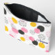 Charming pink, black and gold abstract circle pattern with an elegant script name featured on this large accessory pouch. The backside is sold black with a slightly larger matching name in pink. Change or remove the names to make it yours using the simple Template provided. Ideal personalized gift for family, friends who travel, bridesmaids, teenagers, graduation and more. Constructed from a durable woven material with a zippered closure. Dimensions are 8.5"x12"...a smaller pouch is available.