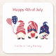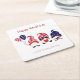 Name, Cute Gnomes 4th of July Square Paper Coaster
