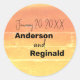 Name Date Summer Rustic Yellow Peach Wedding Classic Round Sticker