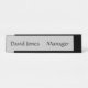 This name desk plate is shown in the black finish with a grey background colour and with a sample name, customise this item and change the text to what you want.