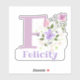 Personalise any item with a Name and Initial with Floral Design Cut-Out Sticker. Example name is Felicity.
