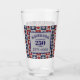 This American-style pint glass, also known as a shaker glass, with "America celebrating 250 years 1976-2026" in a dark blue and grey frame is featured on this unique collector's glass. The background pattern on front and back is a geometric design of small red, blue and cutout squares with red and blue stars painted on vertical distressed wood planks for a vintage rustic effect. Text is a dark blue color. Personal name is on the back in a vintage typewriter font. Change the name to make it yours using the Template provided. (To edit and change font style-color-size and more-- use the Design Tool.) Made with top quality Libbey barware, 16oz. capacity and measures 3.5"diameter x 5.875"h. Excellent printing. See "About" for more information. ---->>>Hand wash only.<<<-----