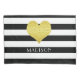 Name Gold Heart Black White Stripes Pattern Pillowcase