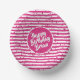 Name Happy Birthday Fuchsia Simple Stripes Pattern Paper Plate