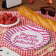 Celebrate your birthday with these fun fuchsia and white striped paper plates.