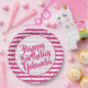 Name Happy Birthday Fuchsia Simple Stripes Pattern Paper Plate