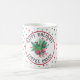 Cute framed "Happy Holidays" bundle of fern, red berries with simple bow and custom text at bottom decorate this classic 11oz coffee mug. Easily change text to make it yours using the Template provided. Large capacity for hot or cold beverages. See "About This Product" at side for more information.