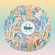 Colorful botanical pattern with double framed name and initial decorate this round pillow. Perfect for back of desk chair, meditation, nursing pillow. Change the name and initial making it yours using the Template provided. Dimensions are 16" diameter when flat and 14" stuffed. 100% brushed polyester is wrinkle free. Machine washable, able to retain color and resist shrinkage. Made in the USA. See "About This Product" at side for more information.