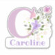 Personalise any item with a Name and Initial with Floral Design Cut-Out Sticker. Example name is Caroline.