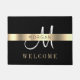 Personalise name, large monogram and welcome message on this elegant black, white and gold design. Click “Customise” to change colours and type styles.