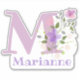 Personalise any item with a Name and Initial with Floral Design Cut-Out Sticker. Example name is Marianne.