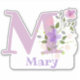 Personalise any item with a Name and Initial with Floral Design Cut-Out Sticker. Example name is Mary.