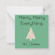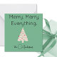 Modern "Merry, Merry Everything." with a simple mid-century Christmas tree and elegant script family name are featured on this pretty light green, 2.5"x2.5" minimal but impressive Christmas note card. The back is blank to add a personalized touch. Ideal winter break cards for teenagers and college students, gift enclosure cards, note cards for work or family and friends. Easily change the greeting and name using the Template provided. NOTE: these are too small to mail in the US, minimum envelope size accepted by the USPS is 3.5"x5". Made and Printed in the USA.