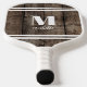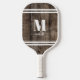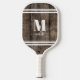This simple, minimalist pickleball paddle makes the perfect gift for yourself or anyone special. It features a rustic wood background with bold serif initial monogram and a script name elegantly displayed below. White stripes add a sporty touch, giving the paddle a clean, timeless look. The font colours and stripes can be customised to match your style, allowing you to create a unique design that stands out on the court. Ideal for personal use or as a thoughtful gift, this pickleball paddle combines functionality with a rustic charm, making it a standout piece for any player. Elegant Simple Monogram Pickleball Paddle Personalised With Initial And Name Rustic Wood Background