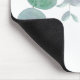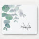 This botanical mouse pad features watercolor eucalyptus greenery in soft shades of green on a white background.