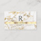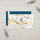 An elegant design of white and gold marble with brushed gold band. Personalise your name, monogram, occupation, QR code and contact info on back. Back is ocean blue with white text and brushed gold band.