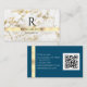 Name & Monogram, QR code, White & Gold Marble Vs 5 Business Card