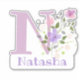Personalise any item with a Name and Initial with Floral Design Cut-Out Sticker. Example name is Natasha.