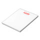 Name note pad with red letter and white background.