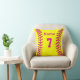 Cool glassy like Pink Threads on Yellow Customisable Softball Pillows with 3 Text Box Templates, under "Personalise it", to type in Her NAME and Jersey NUMBER (or Your Text) on the Front. On the Back, Type in HER MONOGRAM or Jersey Number again. Select the Views to see both sides.