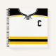 8.5" x 8.5" Spiral Notebook with laminated covers, and a choice of paper style, including sketchbook, ruled, half ruled, graph. The front and back of the notebooks have customisable jersey style designs, allowing you to add your own choice name and number to the back, and an 'A' or 'C' or number on the front, use the boxes to the right of the image to change the text.