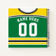 This design is an ice hockey / lacrosse style jersey in green, gold and black with laced collar design.