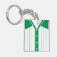 Easy to edit baseball / softball jersey keychain, just use the boxes to the right of the image to insert your own choice of name and number on the back. The design of this jersey has green pinstripe and shoulders and neckline with white trim. The background colour can be edited, just click on CUSTOMIZE.