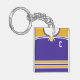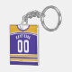 Easy to edit ice hockey / lacrosse / sports jersey keychain, just use the boxes to the right of the image to insert your own choice of name and number on the back, and a either a captain's 'C', alternates 'A' or a number on the front. This jersey design is purple and gold the background colour can be changed, just click 'CUSTOMIZE'.
