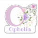 Personalise any item with a Name and Initial with Floral Design Cut-Out Sticker. Example name is Ophelia.