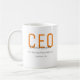 A CEO mug with your name, the name of your company, and its establishment date. The design has an orange and black colour scheme. Simply add your information, add this mug to your cart, and drink your coffee like the boss that you are.