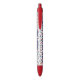 Ideal for gifting to family, friends, business associates, party favours, or promotional giveaways. Busy and cute 4th of July motifs pattern on white background and dark blue "Happy Birthday America" "250 Years 1776-2026" and bold script name are featured on this trendy black ink pen with red trim. Easily change text and name to make it yours using the Template provided. Use the Design Tool to edit font colour-size-style and more. Choose your own trim and ink colour. Minimum purchase of 2. Made in U.S.A.