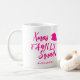 Casual trendy modern typography Christmas family squad hot pink script with a little heart and Santa hat making a festive Christmas holidays pretty hot drinks mug. +++++++++++ Personalise it with your name! It can be a chic decor for you or your family during the holidays or a nice keepsake Christmas stocking stuffer gift for friends or relatives - mother, father, sister, grandma, grandpa.