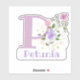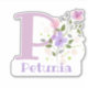 Personalise any item with a Name and Initial with Floral Design Cut-Out Sticker. Example name is Petunia.