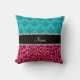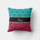Name pink leopard turquoise damask cushion
