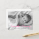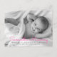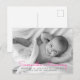 A sweet photo birth announcement card to introduce your beautiful newborn baby girl featuring a whimsical handwritten script with pink text overlay of baby's first and last name. Delete this photo and add your own horizontal orientation photo to the postcard announcement. Simple and cute modern photo style.