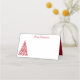 This folded name place card is shown in basic white with a festive holiday Christmas tree print.