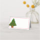 This folded name place card is shown in basic white with a festive holiday Christmas tree print and a red coloured border trim.