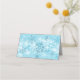 This folded name place card is shown in basic white with a festive holiday Christmas snowflakes print.