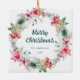 Commemorate the season with this square ceramic ornament showcasing a watercolor poinsettia wreath with “Merry Christmas” and your family name at the centre. The back offers space for a TG original holiday message, making it a cherished keepsake for your tree or a meaningful gift for loved ones.