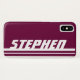 Purple maroon and white sports style iphone case cover. Case reads: Stephen or personalise this case with the name of your choice up to 7 letters. *Please note some names will not always fit due to the nature of the font. A perfect gift for a vibrant sporting child. Uniquely designed by Sarah Trett. www.sarahtrett.com for www.mylittleeden.com