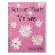Senior Year Vibes in a black retro font, name and date, scattered 70s white daisies on a faux glitter hot pink background, are featured on this back to school student notebook. A practical, girly gift for high school or college seniors. Easily change the script name and date using the Template provided. This 6.5"x 8.75" notebook, contains 80 pages college lined in black. See "About This Product" at for more information.