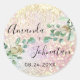 Name Save The Date Silver Drips Mint Glitter Rose Classic Round Sticker