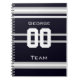 Black, white, and grey. Personalised with name,#, team, sports fan Team notebook. Design by Sandy Closs.