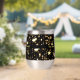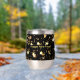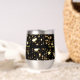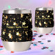 Festive stainless-steel thermal tumbler features gold bright glittery stars pattern with ample room on back for personalisation. Easily change or remove text to make it yours using the Template provided. It has double walled insulation for temperature retention. Stainless Steel construction for durability. The clear lid is leak-proof. Great for transporting hot or cold drinks! Excellent printing and high reviews. See "About This Product" at side for more information.