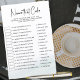 Name that Cake Bridal Shower Game. Easy and fun quiz where guests simply need to match the clue to one of the answers provided. "Name that Cake" title stands out in hand lettered calligraphy with casual elegance. Chic minimalist design with black and white typography on a white background finished, with a gentle watercolor wash and soft green colour palette on the reverse. Simple modern and elegant design to co-ordinate with many bridal shower themes. Please browse my collection for matching items or message me to create the templates you need.