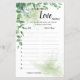 Name that Love Song Eucalyptus Shower Game Card