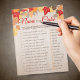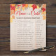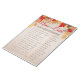 Name That Cake Fall Shower Party Game Notepad Pack of 40. Have your guests use the clues to match the cake with the clue! Easy to tear away and write on. Featuring beautiful bright fall leaves on a washed wood background.